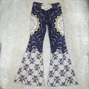 WOLVEN Reverie Flare Bell Bottom High Rise Legging/Pant. Flower mandala boho print. Has a compressed fit, fits more like a Large IMO BUT that is due to the COMPRESSED Fit. Made to fit this way. I normally wear a Large in most leggings & this XL me perfectly.