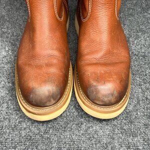Wolverine 10" Wellington work boots men's brown leather pull on soft toe work boots in gently used condition!