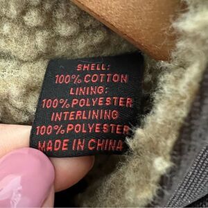 Quilted canvas lined with soft lofty Sherpa and lightly insulated