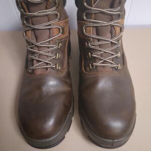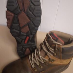 Durable and stylish steel toe brown leather hiking boots perfect for work or outdoor adventures. Designed for comfort and support. In excellent condition! These are made by Wolverine and are a mens size 11.5 wide.