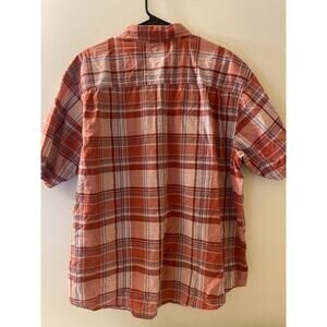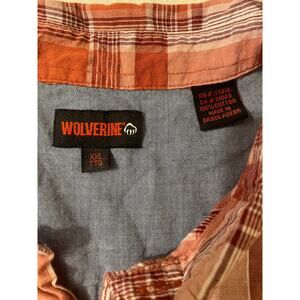 Wolverine Mens Size XXL Button Up Short Sleeve Plaid Orange White Shirt Casual