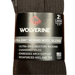 Wolverine Men’s Ultra Dri Merino Wool Blend 2 Pack, Size L, NWT