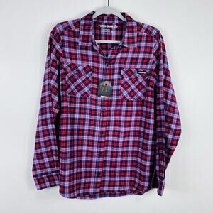 Men's Wolverine red/pink/navy blue plaid flannel button shirt