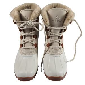 Wolverine Torrent Ivory Leather Rubber Waterproof Faux Fur Lined Mid Boots 7 M