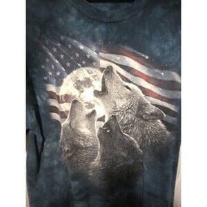 Wolves Moon USA American Flag 2014 Collin Bogle Large L Blue Tie-Dye T-shirt
