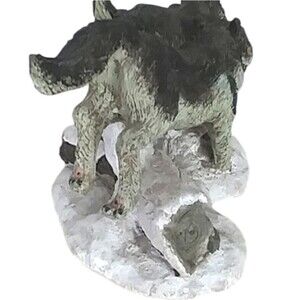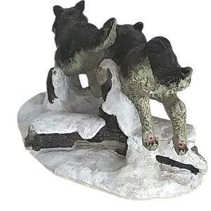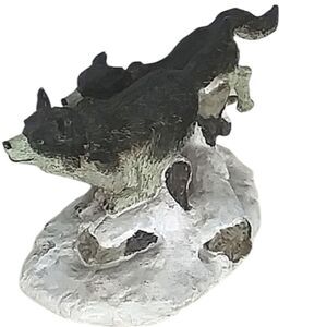 Wolves Statue Hand Painted Art Happy Running Wolf Plaster Look Gift 7" X…