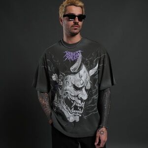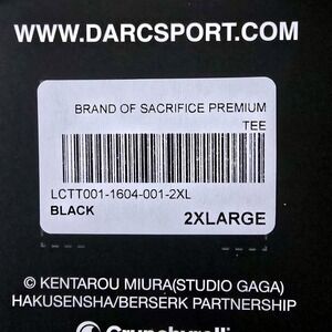 The Wolves x Berserk Brand Of Sacrific Premium Tee Shirt in size 2XL is a black short sleeve t-shirt featuring a graphic print of the Berserker character from the popular anime series. Made of cotton knit fabric, this regular fit t-shirt is machine washable and has a crew neck. The limited edition shirt is part of the Darc Sport product line and is perfect for fans of streetwear, anime, and collaborations. Ideal for summer, fall, and spring, this unique t-shirt is a must-have for any Berserk enthusiast looking for a high-quality and stylish addition to their wardrobe.