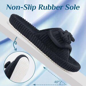 ANTI-SKID OUTSOLE: The slippers for women indoor have upgraded non slip rubber soles. Enhanced patterns grip wet bathroom floors, splattered kitchen tiles, or dewy patios. The womens slides can move freely with no sudden slips, perfect for families.
