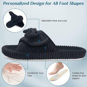 ADJUSTABLE STRAP DESIGN: These womens slippers feature the hook and loop fastener design, fitting various foot types—wide, narrow, swollen, pregnant, or post-surgery feet. The ladies slippers can easy to adjust with one hand, no more hassle with ill-fitting slippers!