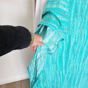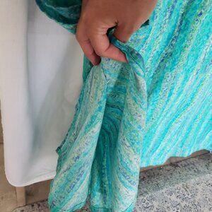 Woman Blue Green Multicolor Scoop Neck Long Dress