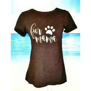 Woman "FUR MAMA" T-Shirt BLACK with SILVER PAW Print STRETCH Lightweight size Sm