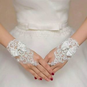 Woman Fingerless Beaded Lace Beaded Wedding Gloves Short Length for Bridal 2019