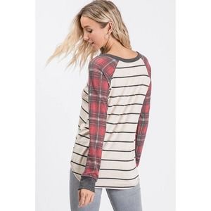 Woman size Medium lightweight long sleeves top. Sleeves are flannel print and run just a little bit big on sizes making it a comfy flowing fit. made of 95% rayon 5% spandex