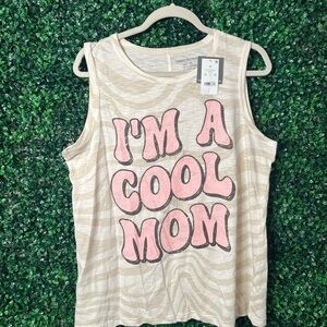 This playful woman tank top features a fun 'I'm a Cool Mom' graphic in pink on a cream background. Perfect for casual outings and playtime.