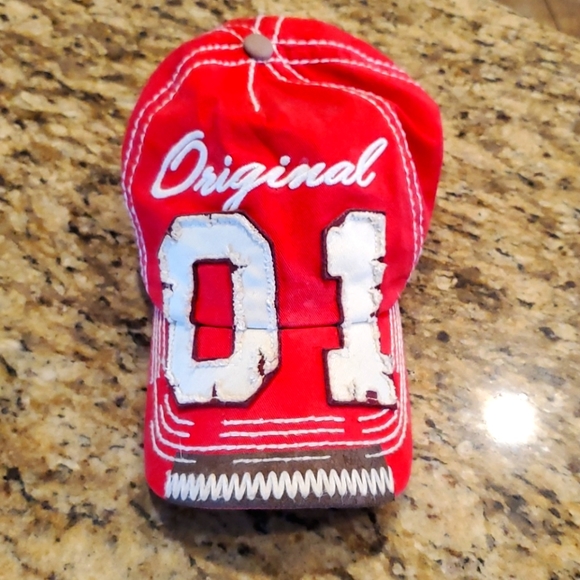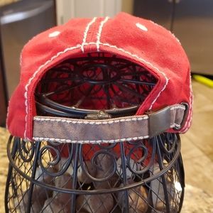 Never work womans ball cap. Broken in material, natural bill bend super comfortable just too red for my complexion