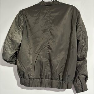 Military green jacket, with snap bottoms details on arms.