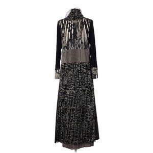 Woman Lee Andersen Wearable Art Maxi Dress Black Gray Brown Cowl Neck Size M