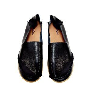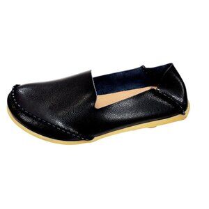 The Venus Celia Women's Comfortable Driving Loafers are designed with a focus on both style and comfort. Crafted from durable leather, these slip-on flats feature a unique rubber sole that ensures a steady grip and a comfortable walk. Suitable for casual outings or a relaxed day at work, these loafers combine elegance with practicality, making them a versatile addition to any wardrobe. The soft leather material enhances comfort, while the classic black color provides a timeless look.