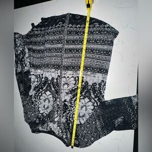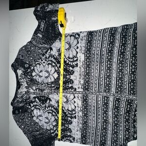 Elegant blouse with intricate black and white floral patterns. Perfect for adding sophistication to any outfit.