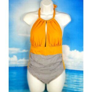 Woman ONE Piece Swim Bathing Suit HIGH NECK Keyhole front HALTER size Lg