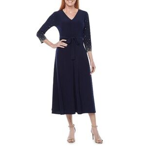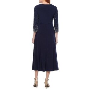 Woman PLUS MSK Navy Beaded Fit & Flare Stretch V-neck Dress midi dress 1X MSK