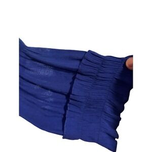 Embrace effortless style with this vibrant blue blouse, a testament to relaxed sophistication. Cascading tiers create a flattering silhouette that moves with grace, while the lightweight fabric offers breathability and comfort. The long sleeves, finished with subtle elastic cuffs, add a touch of refinement to the bohemian-inspired design. A rounded neckline complements the flowing shape, making it ideal for both casual and dressy occasions. This tiered top is a beautiful choice for brunch with friends, an evening concert, or a casual day at the office.
