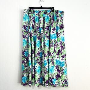Woman Within 1X Linen Skirt Womens Plus Size Floral A-Line Artsy Summer Teacher Casual Work Long