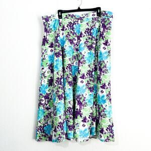 Woman Within 1X Linen Skirt Womens Plus Size Floral A-Line Artsy Summer Teacher