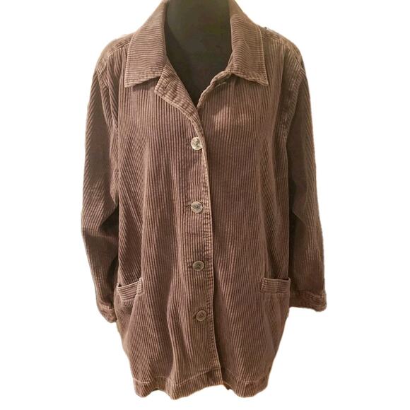 Woman Within 1X Plus Size Pleat-Back Swing Corduroy Jacket Lavender Gray Lagenlook Shacket pearl buttons