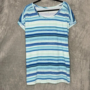Woman Within 1X Shirt Top Blue Striped Short Sleeve Scoop Neck Cotton Blend Knit