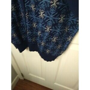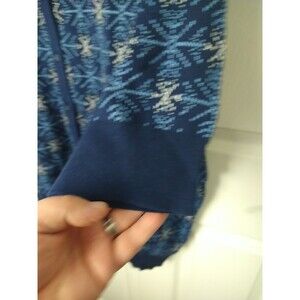 Woman within blue white snowflake short sleeve button front cardigan sweater in excellent condition no flaws
