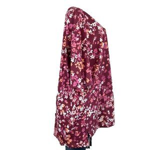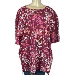Woman Within +26/28 Maroon Red Floral Crew Neckline 100% Cotton Short Sleeve Top