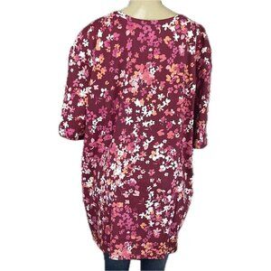 ITEM: Woman Within +26/28 Maroon Red Floral Crew Neckline 100% Cotton Half Sleeve Top