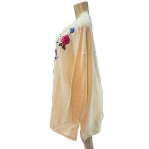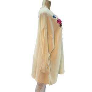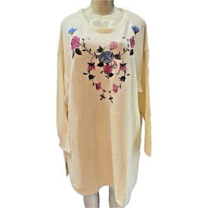 Woman Within +2X Cream Embroidered Floral Crew Neck Ribbed Knit Long Sleeve Top