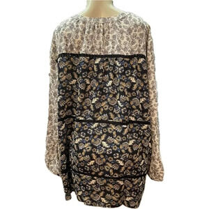 ITEM: Woman Within +30/32 Black-Gray Floral Mixed Print Button Down Lace Inlay Trim Long Sleeve Blouse