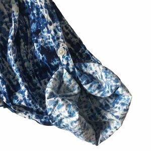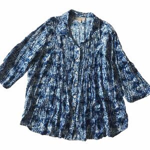 Keywords: Woman Within, Blue Print Blouse, Plus Size Top, Rayon Blouse, 3/4 Sleeve Blouse, Button Front Top, Abstract Print, Collared Blouse, Casual Blouse, Women's Top, 1X Blouse, Relaxed