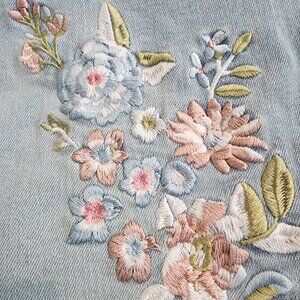 Add a touch of feminine flair to your summer wardrobe with these Woman Within Bermuda Shorts in size 14W. These pre-loved shorts feature a beautiful embroidered floral design that sets them apart from your average pair of shorts. The intricate detailing adds a trendy and stylish element to your outfit, perfect for casual outings or beach days. Made by Woman Within, a trusted brand known for their quality and comfort, these shorts are sure to become a staple in your closet. The used condition only adds to the charm, giving them a lived-in look and feel. The size 14W ensures a comfortable and flattering fit for a range of body types. Don't miss out on these unique and versatile shorts that will elevate any summer ensemble.