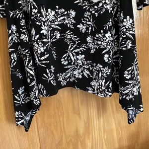 Woman Within Black Asymmetrical Floral Tunic with Long Sleeves
