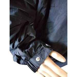 Woman's raincoat, hooded jacket, black coat, removable lining, drawstring hood, nylon shell, polyester lining, snap closure, zippered coat, 2X size, outdoor wear, weather-resistant, versatile coat