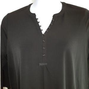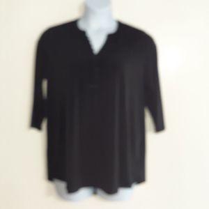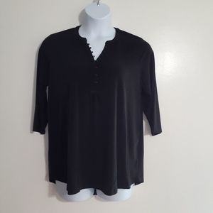 NWOT black swingy fabric 3/4 sleeve henley tunic top with buttons in size 14/16 by Woman Within
