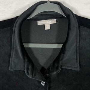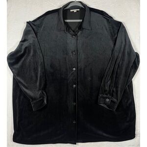Woman Within Black Velvet Velour Button Up Shirt Blouse Top Shacket 2X 26/28