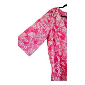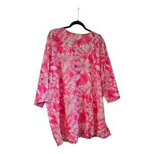 The Woman Within Blouse Top in size 2X features a beautiful floral pattern with 3/4 sleeves and embroidered accents, making it a perfect choice for travel, parties, or casual outings. Made of lightweight cotton material, this pullover top has a split neck neckline and is machine washable for easy care. The multicolor design and tunic style add a touch of summer, fall, or spring flair to your wardrobe, while the plus size fit ensures a comfortable and stylish look for any occasion. Made in India, this blouse from Woman Within is a versatile and eye-catching addition to your closet.