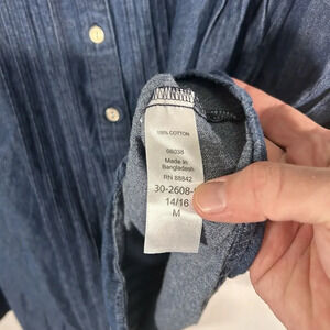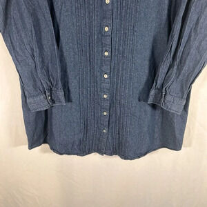 Woman Within Blouse Women's Medium 14 16 Dark Wash Blue Vneck Button Up Long Sle