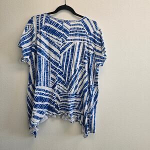 Woman Within Blue and White Cotton Geometric Print size Large (18/20)