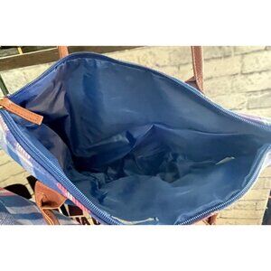 Woman Within Blue-Pink Plaid Flannel Faux Leather Handles 2 Piece Tote Set