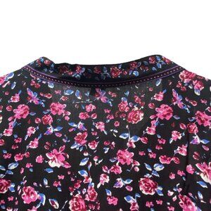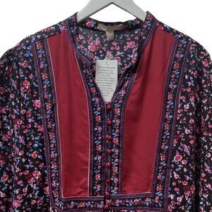 Woman Within Boho Blouse Size 18/20 Tunic Top Black Wine Floral Rayon NWT Long