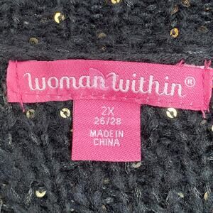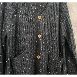 Woman Within Button Up Cardigan Sweater 2X Black Chunky Knit Gold Fleck Pockets