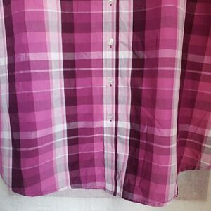 Woman Within Button Up Shirt 1X Plaid Classic Collar Hemline Styling Purple Pink