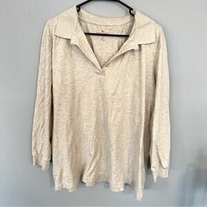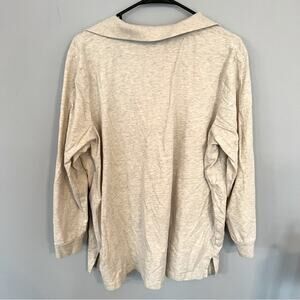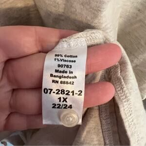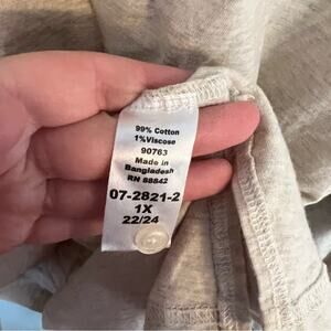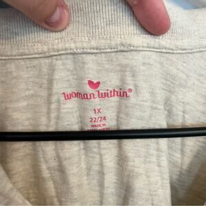 Woman Within Collared Shirt in women’s Plus Size 22 / 24 (WW size 1X). Long Sleeves. Color is a heathered gray and slightly off-white. Shirt is in very good used condition with no flaws or stains and minimal wash wear. Polo style. 99% cotton, 1% viscose. Please see close-up pictures for condition details. Pit to pit measures approx 26.25 in across.