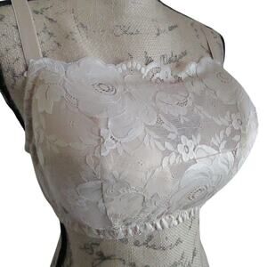 Comfort Choice 38D Beige Lace Wireless Bra Modesty Panel Adjustable Straps
